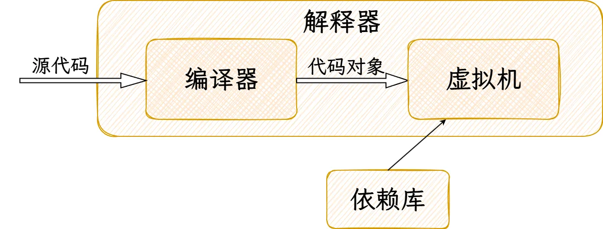 直接使用python不加任何参数从而进入一个交互式环境的时候,执行逻辑和这个是一致的,只不过源代码不是一次性输入的而已。每输入一段代码,同样会经历编译和执行两个阶段。